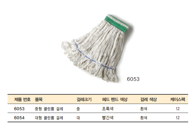 클래스 10,000 이상의 청정도를 요구하는 페인트 부스나 실험실 같은 산업 분야에서 사용하기 적합 한번의 걸레질로 많은 바닥 면적을 처리할 수 있도록 걸레 끝이 둥글게 묶여 있고 테일밴드 처리가 된 제품 닳거나 보풀이 일지 않는 레이온/ 폴리에스테르 직물로 제작 오랜 제품 수명을 위해 방축 가공된 세탁 가능한 걸레 사이드 게이트 마포 핸들 및 클램프형 마포 핸들과 함께 사용할 수 있도록 디자인된 표준형 헤드밴드 |