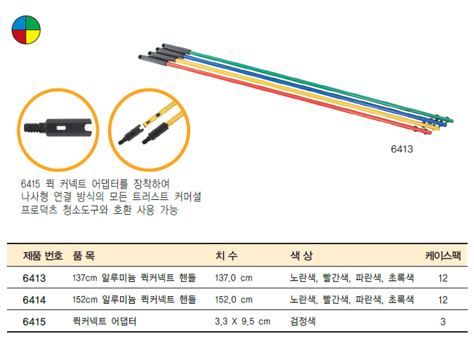 6415 퀵 커넥트 어댑터를 장착하여 나사형 연결 방식의 모든 트러스트 커머셜 프로덕츠 청소도구와 호환 사용 가능