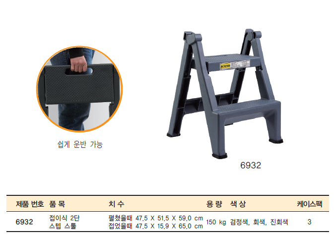 망형 구조 성형기술로 제작된 고내구성의 제품으로 최대 150kg까지 지지 가능