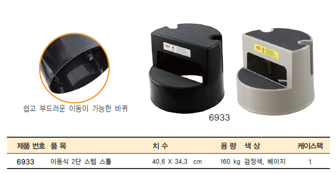 쉽고 부드러운 이동이 가능하도록 세개의 플라스틱 바퀴 장착