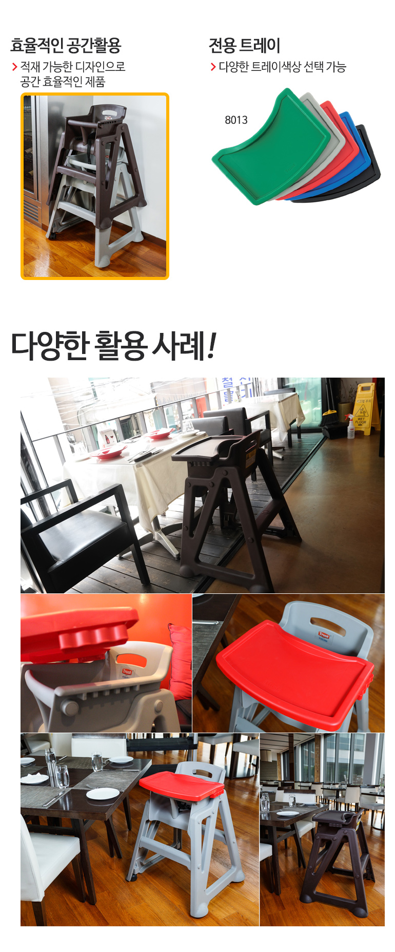 영유아를 위한 안전과 청결을 최우선으로 고려한 제품으로 호텔, 양식당, 한식당, 대형 마트, 푸드코드, 워터파크, 패스트푸드점등에서 광범위하게 사용되고 있는 제품